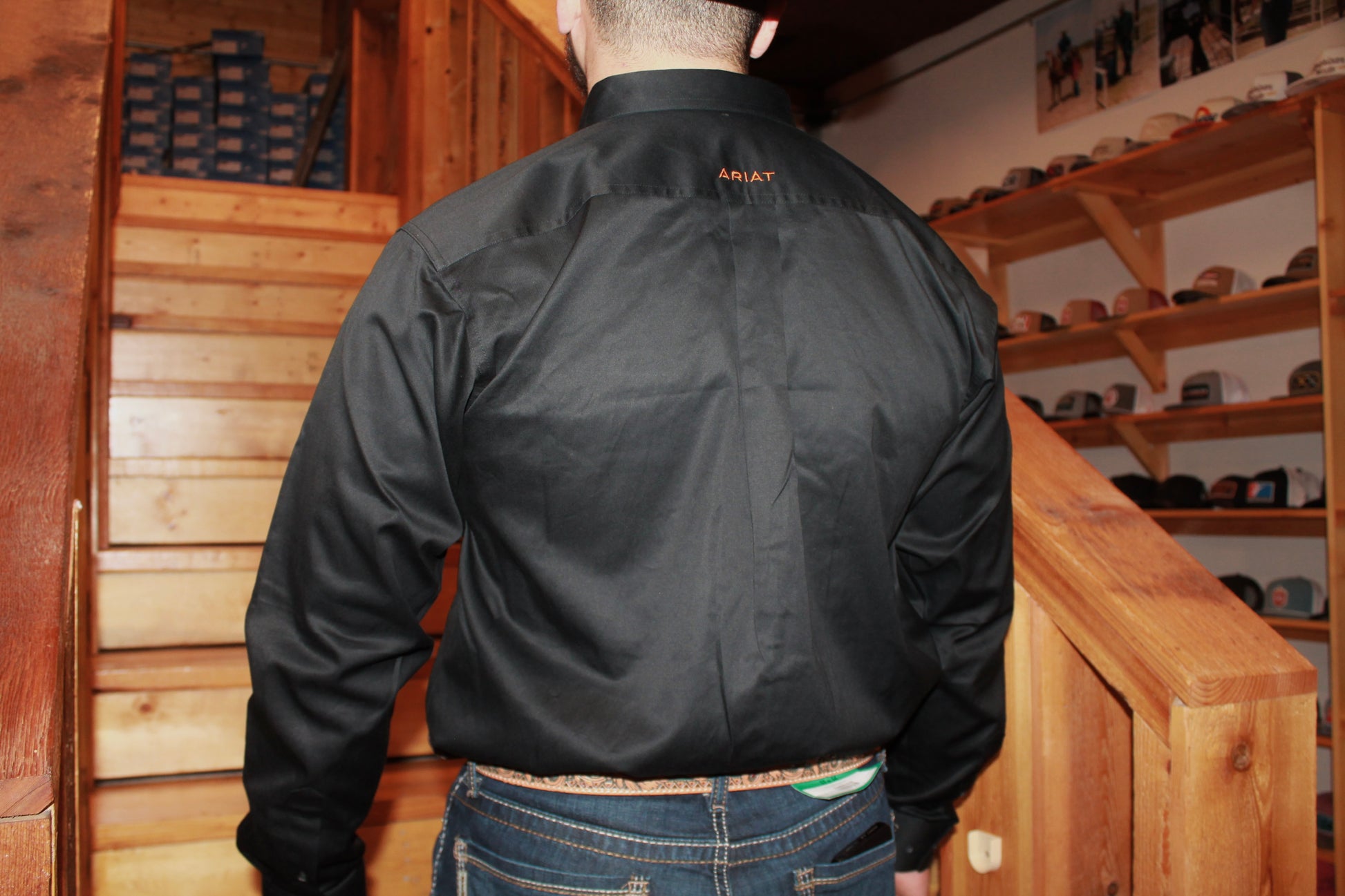 The Ariat Classic Twill Black LS is expertly designed for men, featuring a classic fit and timeless white color. Crafted by Ariat, this longsleeve shirt is the perfect addition to any wardrobe, offering both style and comfort. Trust in the quality and reliability of Ariat for a classic look that never goes out of style.