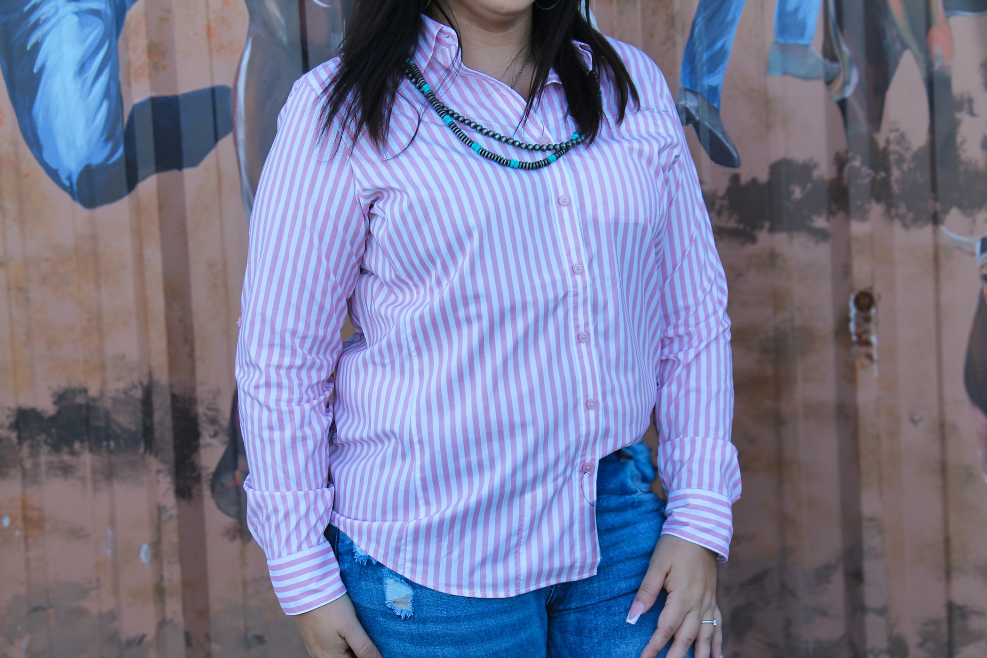 Experience maximum comfort and protection with the Ariat VentTek Zephyr Stripe LS. The sun protection fabric and moisture movement technology keep you cool and dry, while the greater arm mobility design allows for full range of motion. Perfect for active women, this pink stripe LS is a must-have from the trusted Ariat brand.