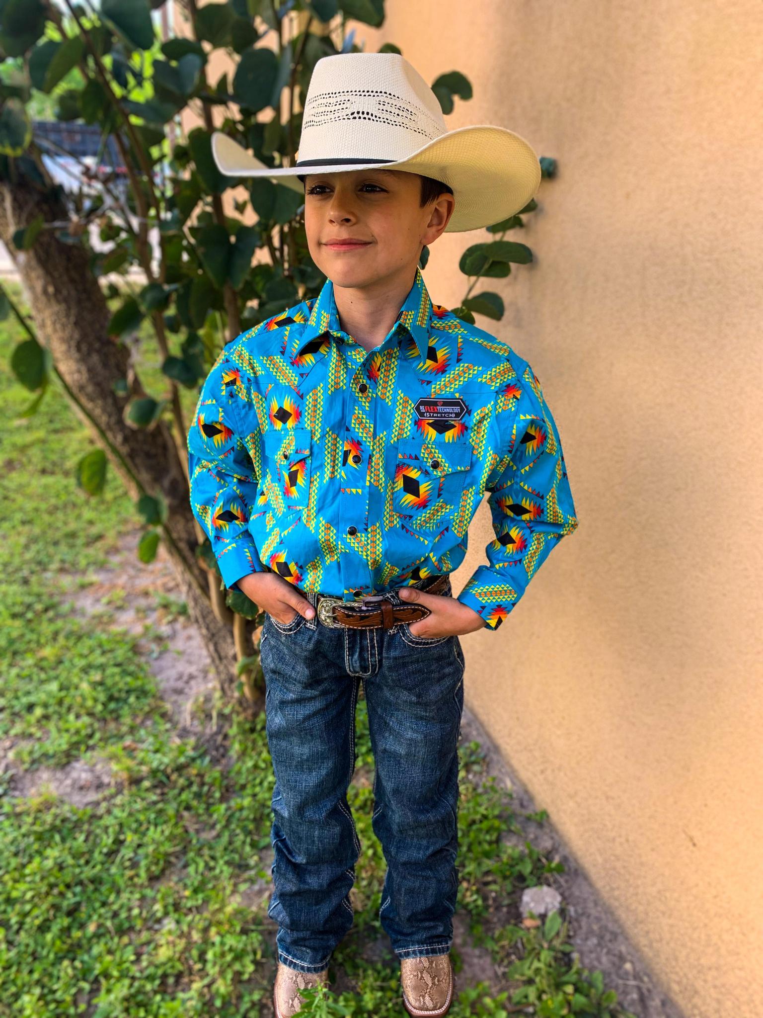 Boy's Rock and Roll Bright Turquoise Ls Pearlsnap
