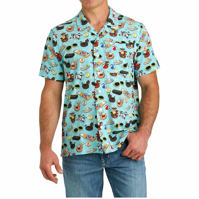 CINCH Blue Camp Pool Party Short Sleeve Shirt