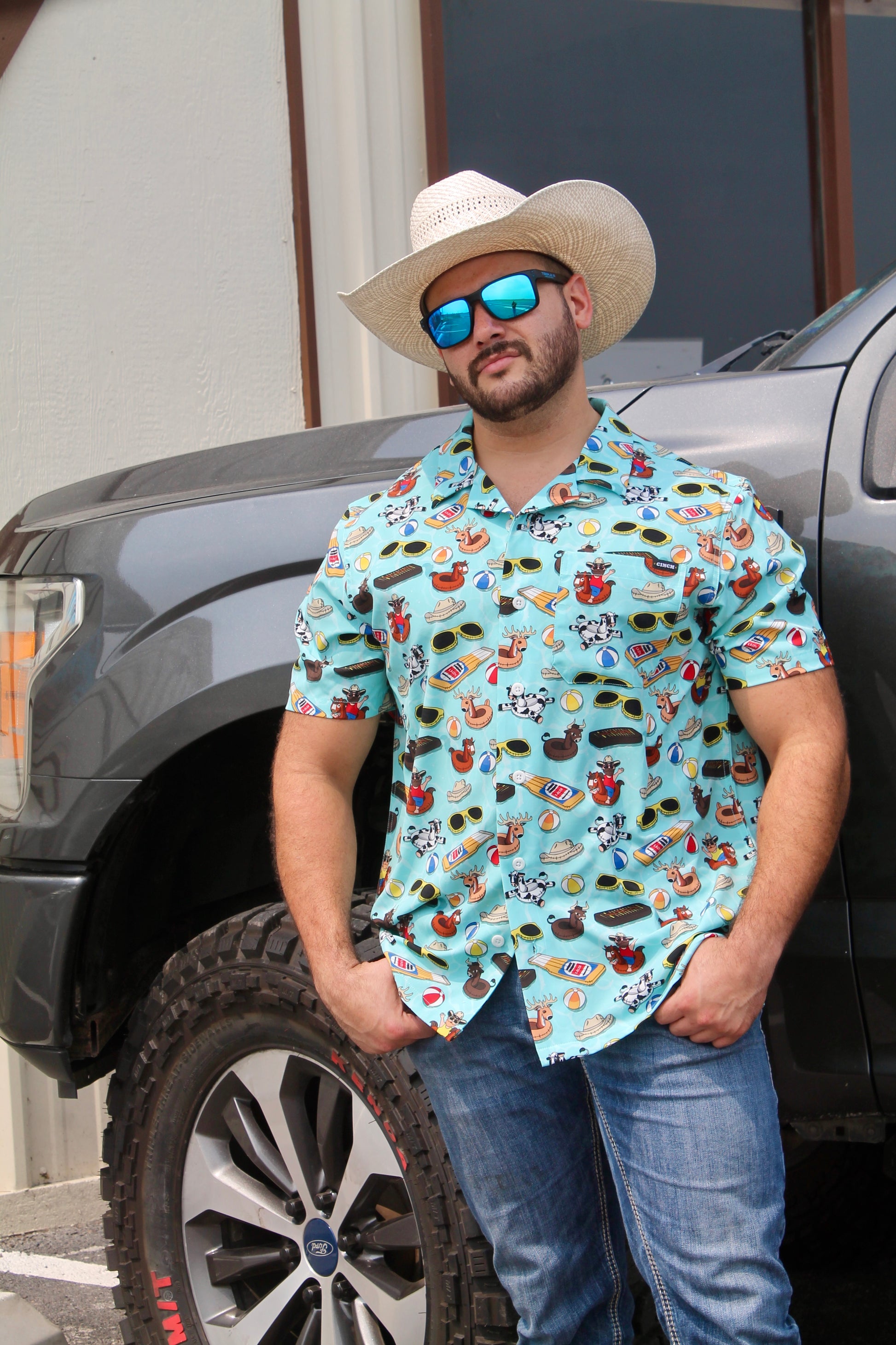 Cinch creates fun print camp shirts. Express yourself in comfort and your favorite jeans. This camp shirt makes a statement and shows off your personality. As the weather warms up, this shirt will keep you comfortable indoors or outdoors.