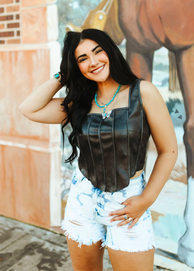 THISSSSSS. we see so many opportunities here... AND DON'T LET HER SCARE YOU - she can layer with even a short sleeve to create a great look - wide straps so the bras can remain secret. LEATHER LIKE material - it doesn't get much more soft - you truly need to touch this one.