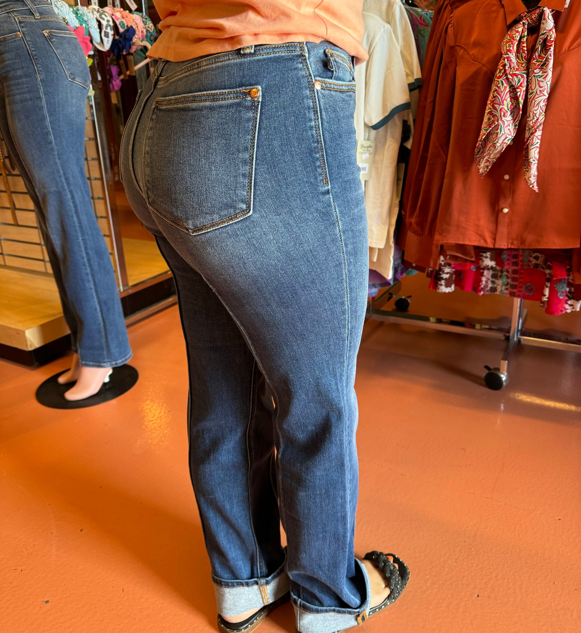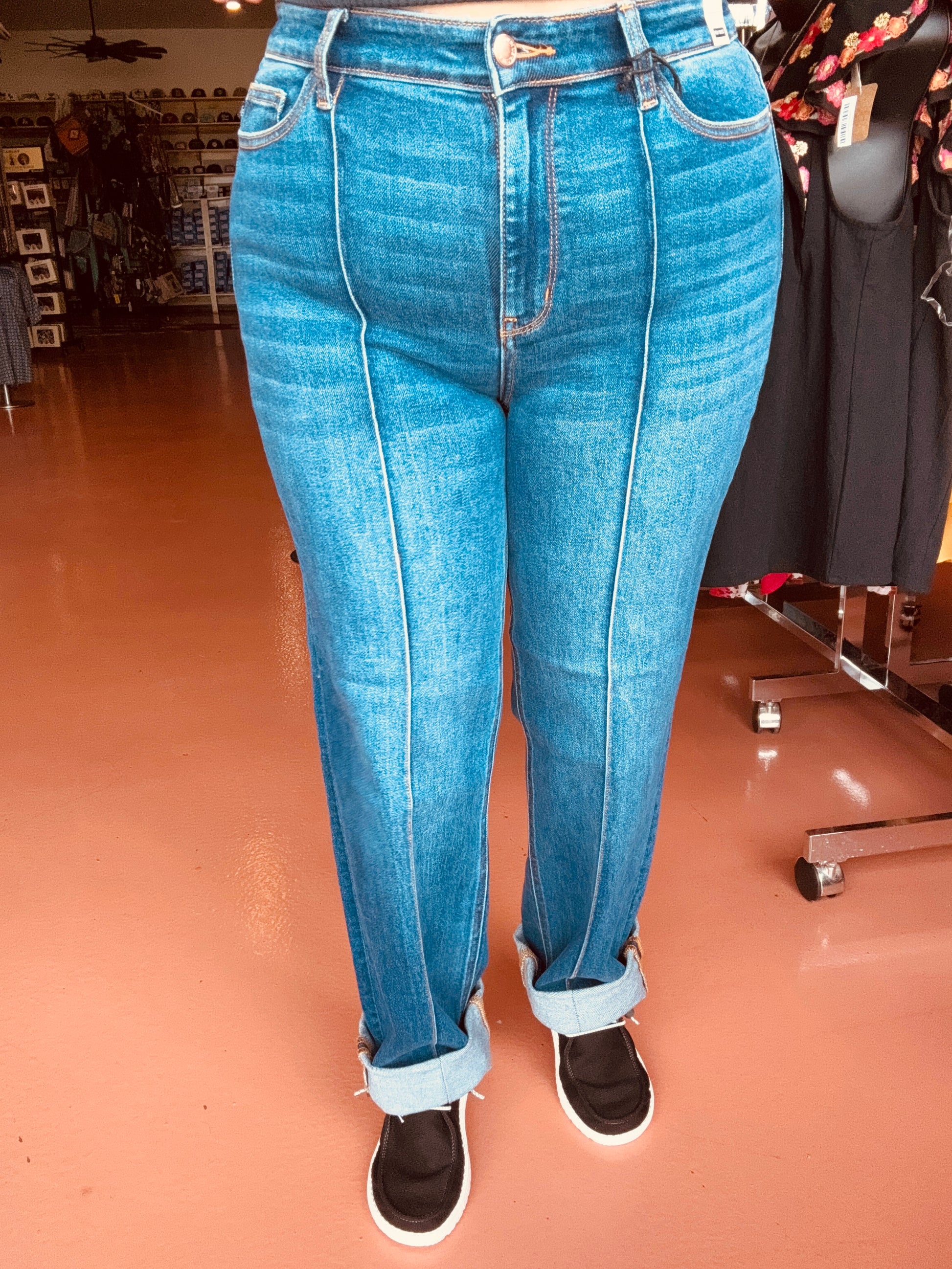 Elevate your denim game with our Judy Blue Vintage Babe Jeans! These high waisted jeans feature front seam detailing for a stylish touch and are cuffed for a chic, straight leg fit. Perfect for any retro-inspired look, these jeans will make you feel like a true vintage babe!