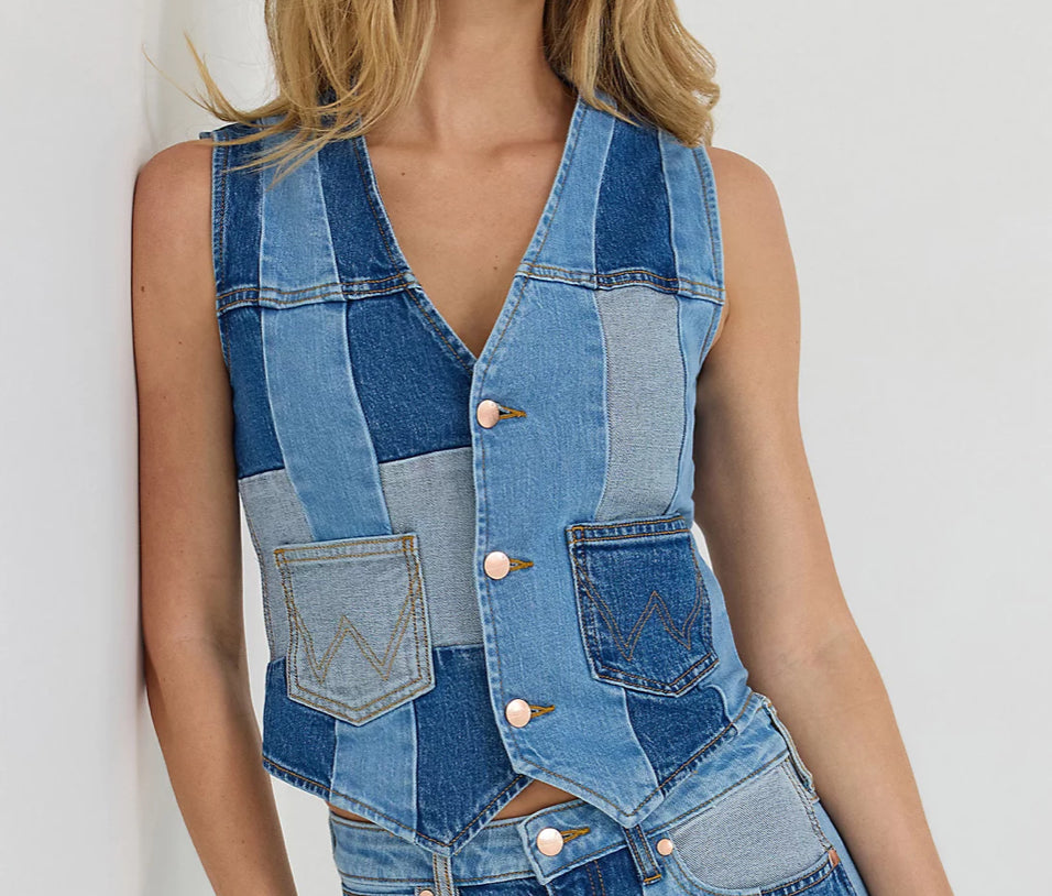 Without a doubt, vests are having a moment. With its modern and flattering fit meets vintage-inspired detailing, the Wrangler® x Lainey Wilson Patchwork Vest shines like no other. Even better, it boasts authentic Wrangler details including 'W' stitched pockets and a button closure. Lainey was especially hands-on in the creation of the mini patchwork collection, adding her creative direction to every piece. That’s why this vest is so feminine and versatile. Wear it alone or under its matching blazer. Add the Patchwork Bell Bottom Jeans and rock a Lainey-approved, head-to-toe showstopping look.