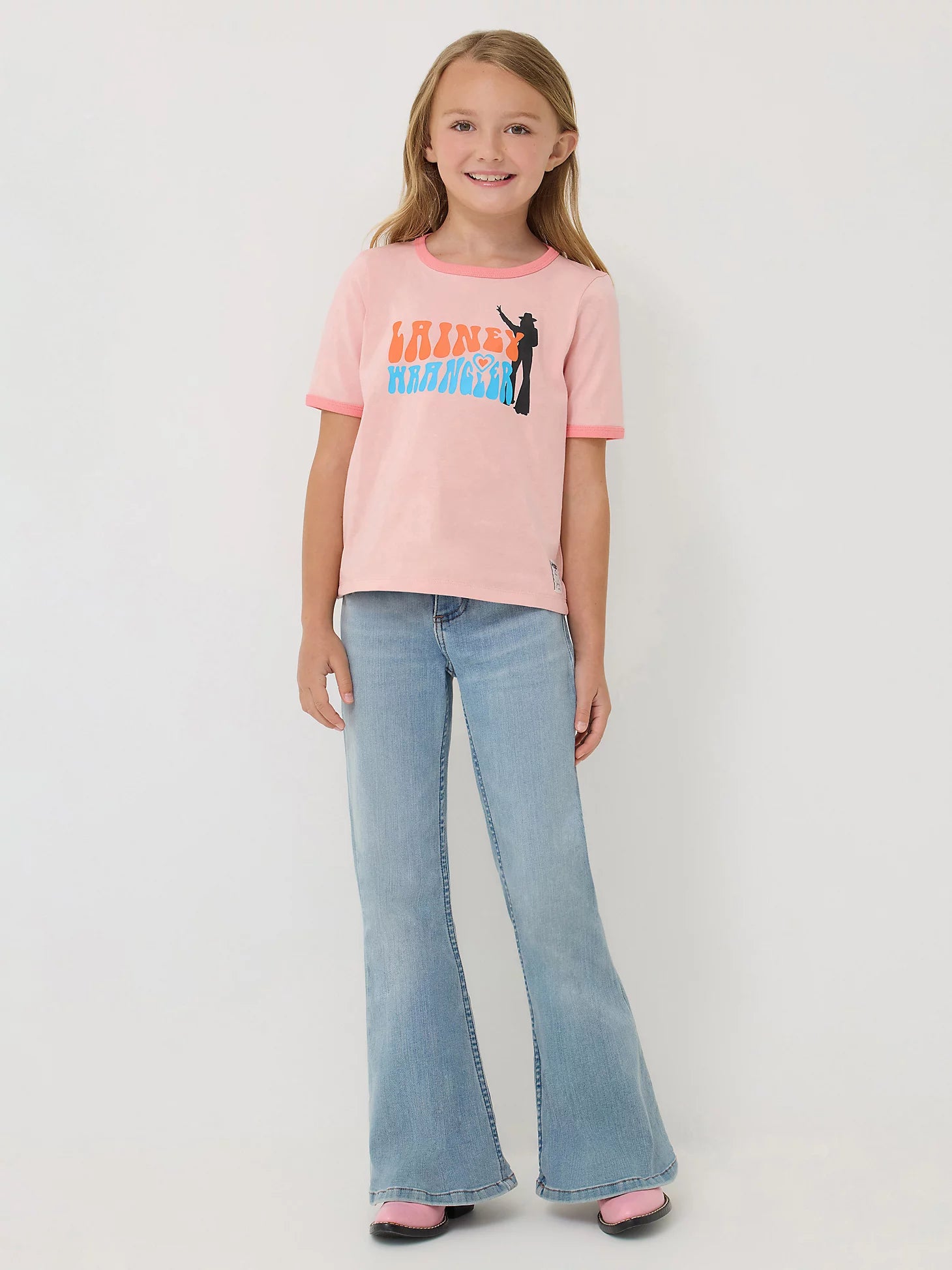 Never too young to embrace a little bell-bottom love. The Girl's Wrangler ® x Lainey Wilson Daydream Bell Bottoms take fit cues from the Wrangler Trumpet Flare Jean, as well as use the same fabric and light wash the women's collection bell bottoms. We topped off the look with authentic details including the classic 'W' stitching on the back pocket, Wrangler patch, and riser. Lainey’s full signature is embroidered on the waistband as a nod to how hands-on she was in the creation of every collection piece, including this one. There is also a print of a special handwritten message on the inner pocket bag. Girls can pair them with a favorite tee to make a fierce, Lainey-inspired look that’s all their own.