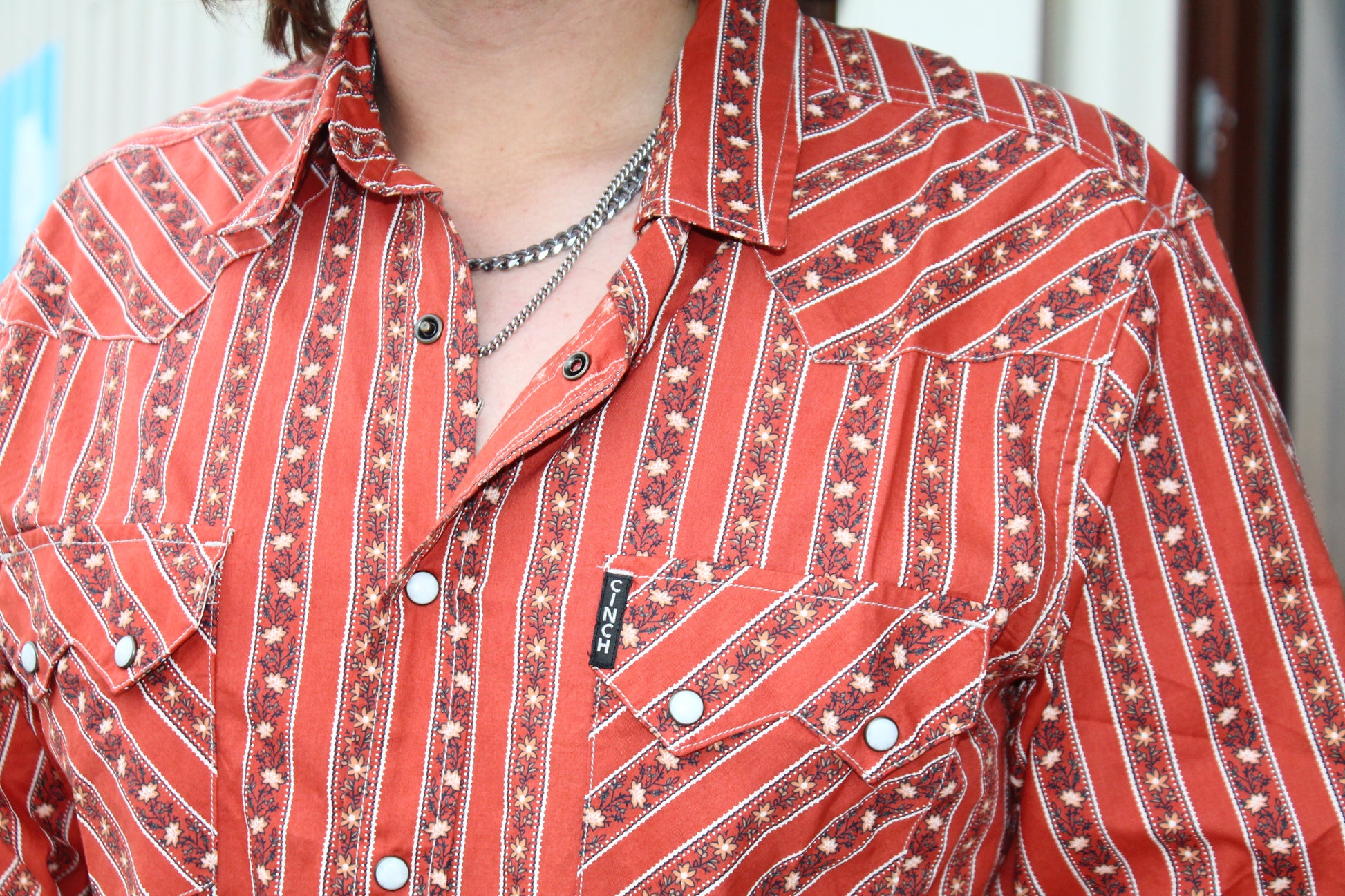 Expertly designed for comfort and style, this Men's Cinch Orange Flower Long Sleeve shirt features a vibrant orange base adorned with rows of delicate flowers. The crisp white button down adds a touch of sophistication to any outfit. Elevate your wardrobe with this eye-catching piece.