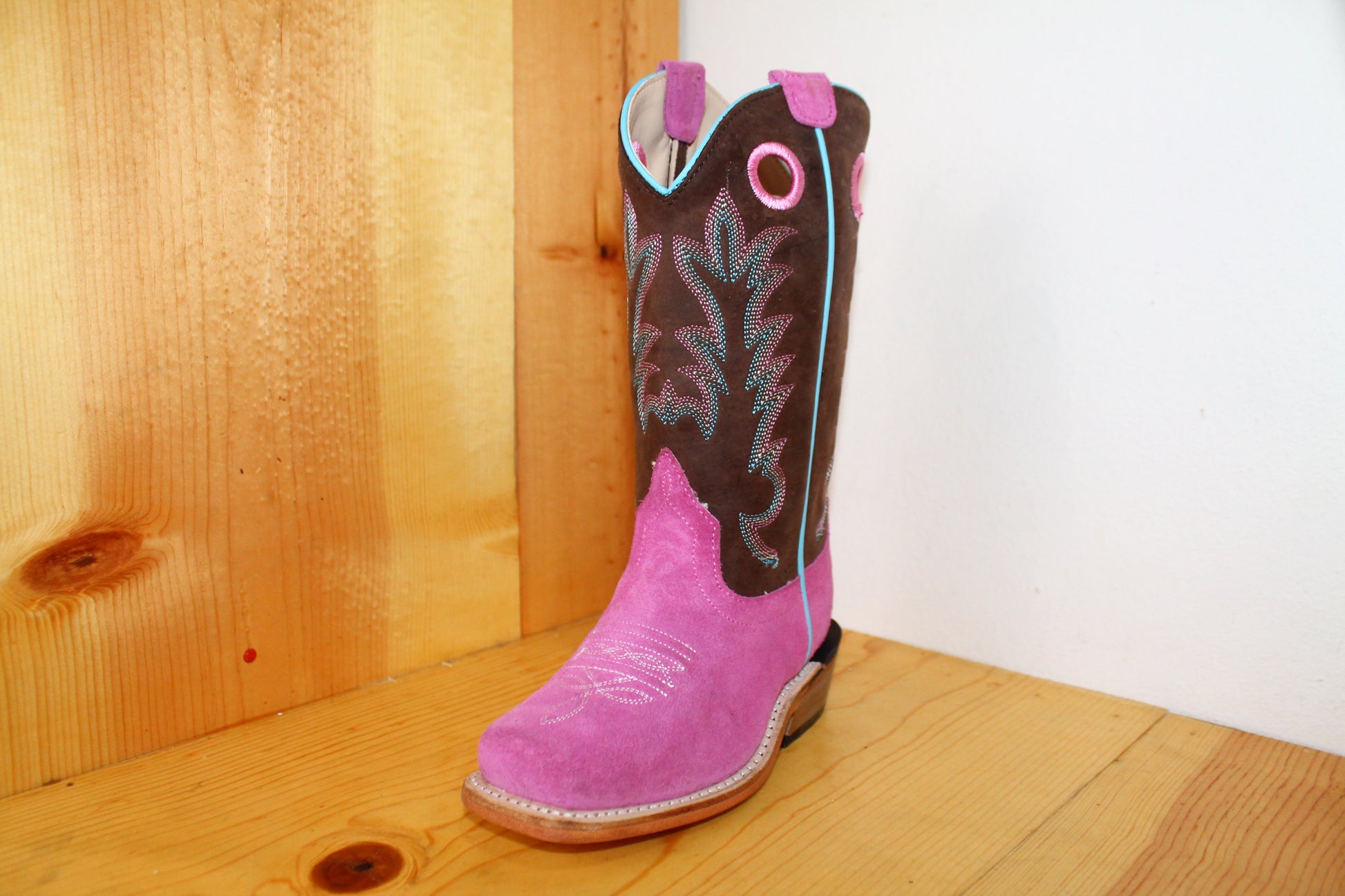 Old West Youth Pink Suede Boots