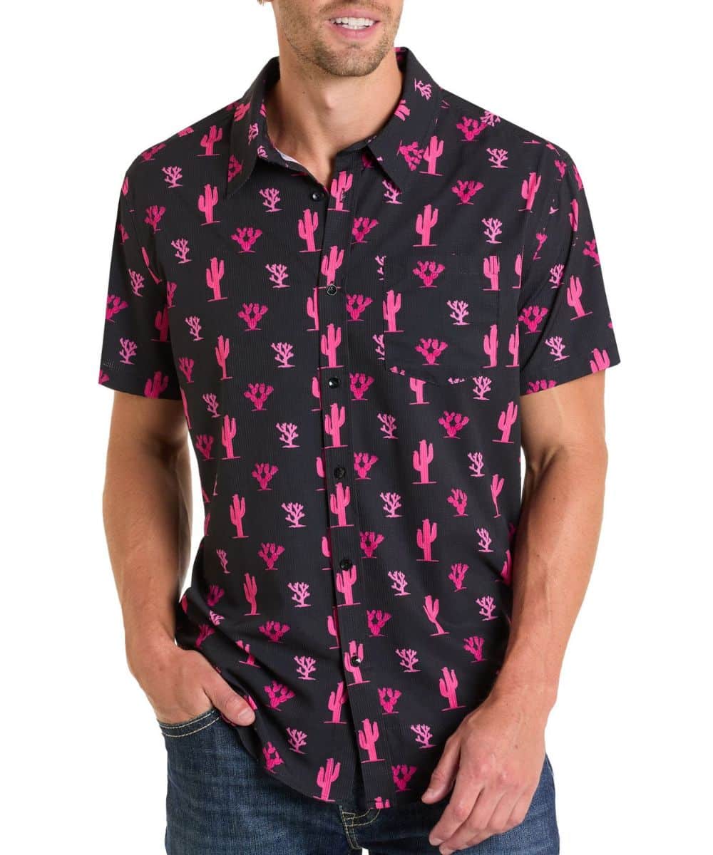 Rock&Roll Denim Tek S/S Button-Up - Black/Pink