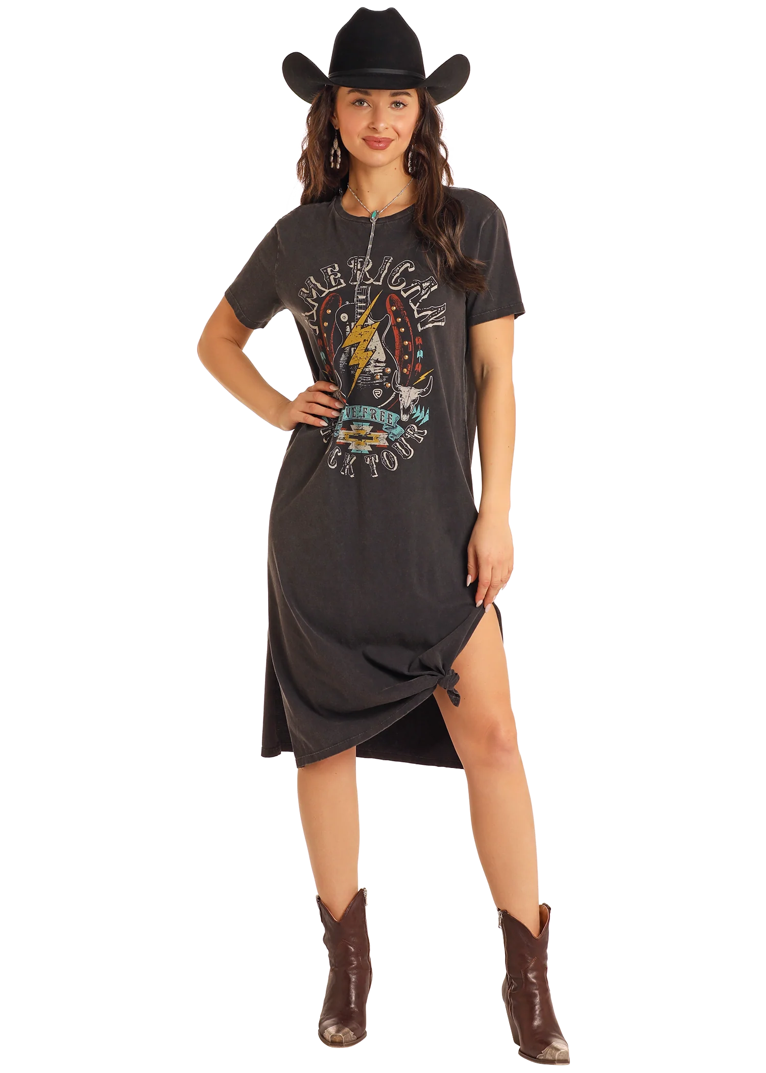Rock&Roll Denim American Tour T-shirt Dress- Black
