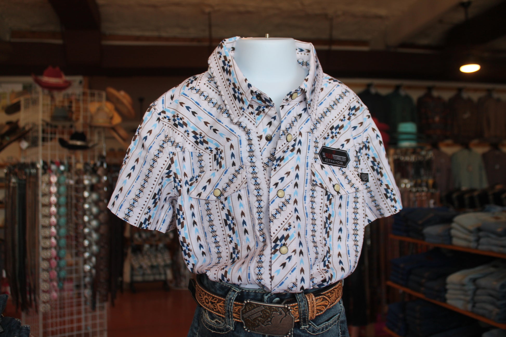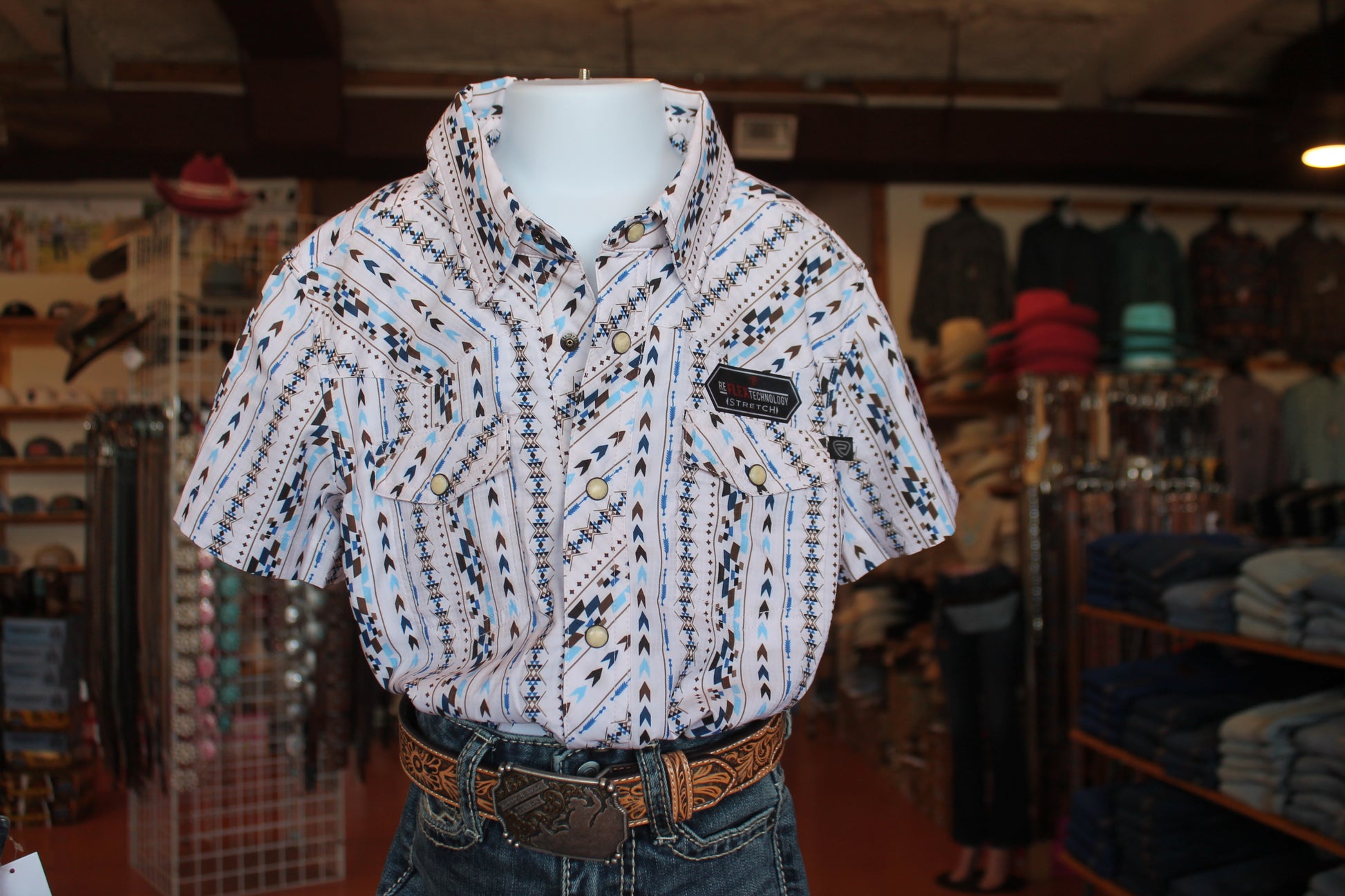 R&R Boy’s White/Blue Arrow SS Pearl-snap