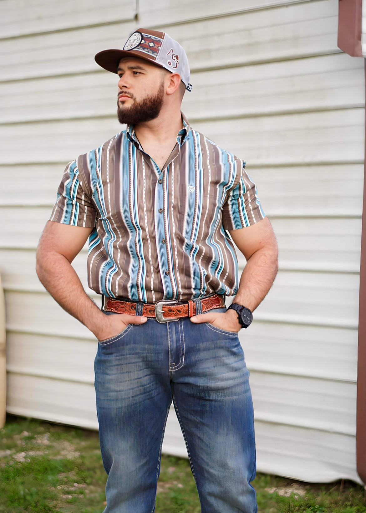 Rock & Roll Denim Brown/Blue Striped Short Sleeve