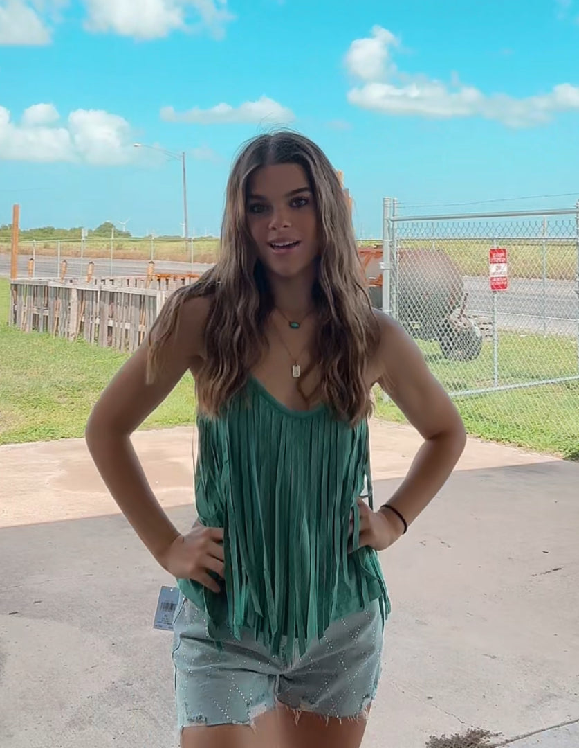 Rock & Roll Teal Fringe Top