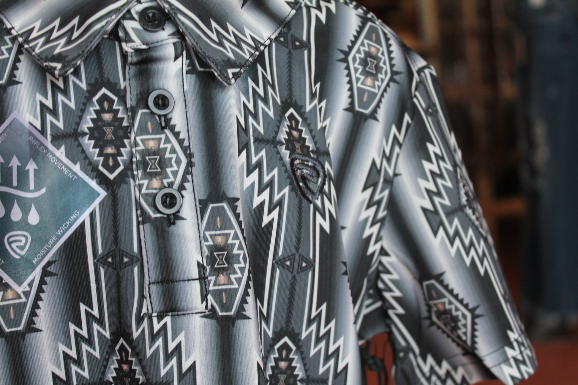 The Rock & Roll Youth Rex Polo is a versatile and high-performing choice for any active youth. With a sleek black, grey, and white Aztec print and hints of brown, this polo not only looks stylish but also features quick-drying technology and reflex movement for ultimate comfort. Its performance fit and moisture-wicking capabilities make it perfect for any situation.