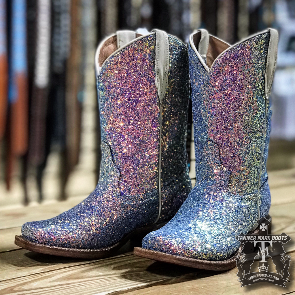 Little Girls Multi Color Mermaid Sparkle Boot in Blunt Toe
