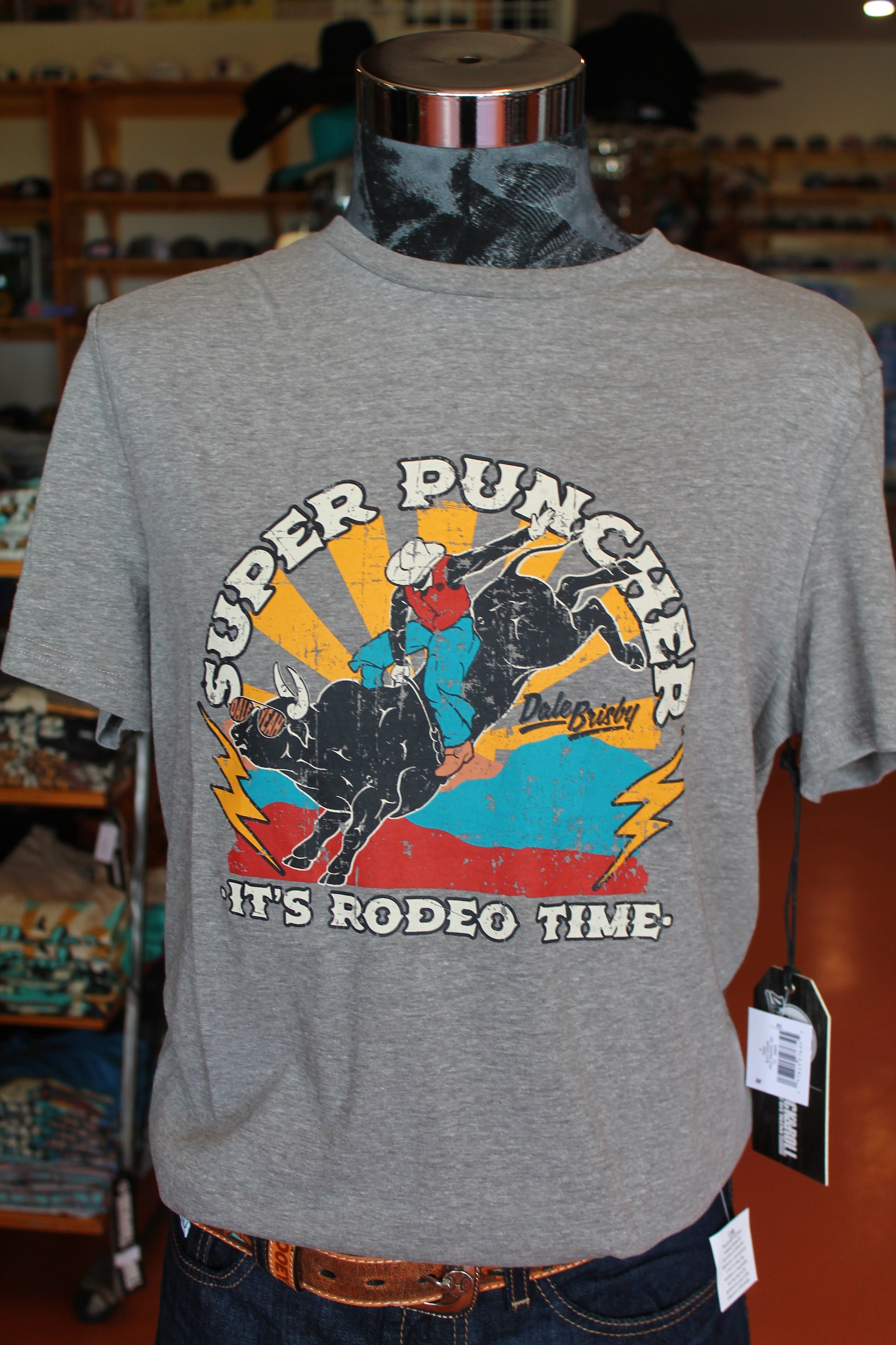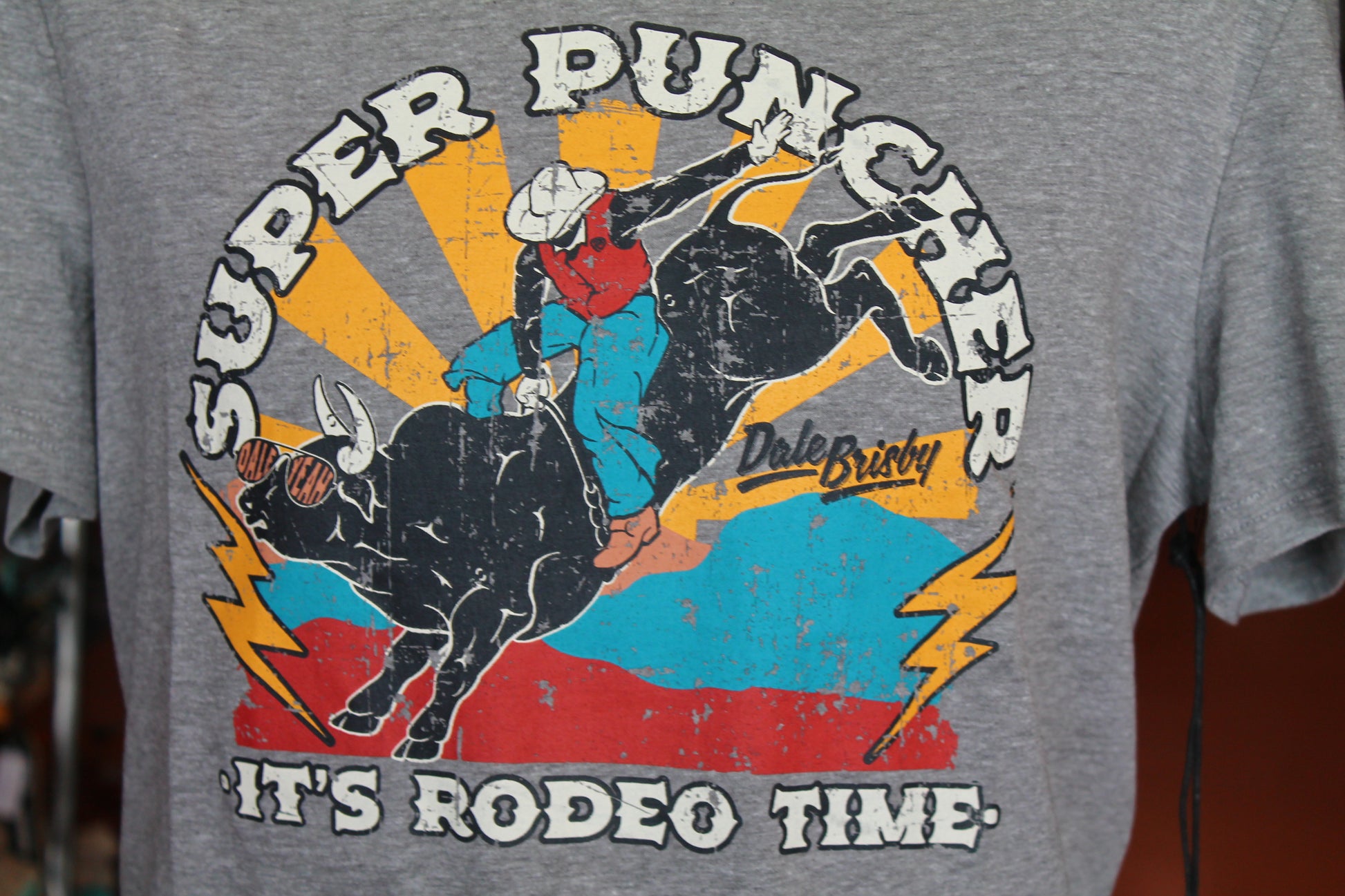 As a industry expert, we present the Dale Graphic Tee Grey Bull Ryder, the perfect versatile top for any occasion. Made with 60% cotton and 40% polyester, it offers a comfortable and stylish fit. The grey color, bull Ryder graphic, and "Super Puncher" print add a touch of personality.