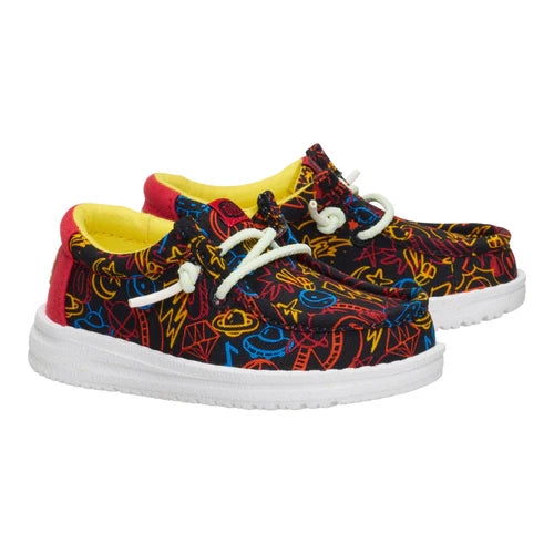 What little kid doesn't want to glow in the dark? The Wally Toddler Space Glow slip-on shoes are made from lightweight textile with an allover print that pops. Finished off with a light and flexible underfoot and a wide collar that kids can step into.