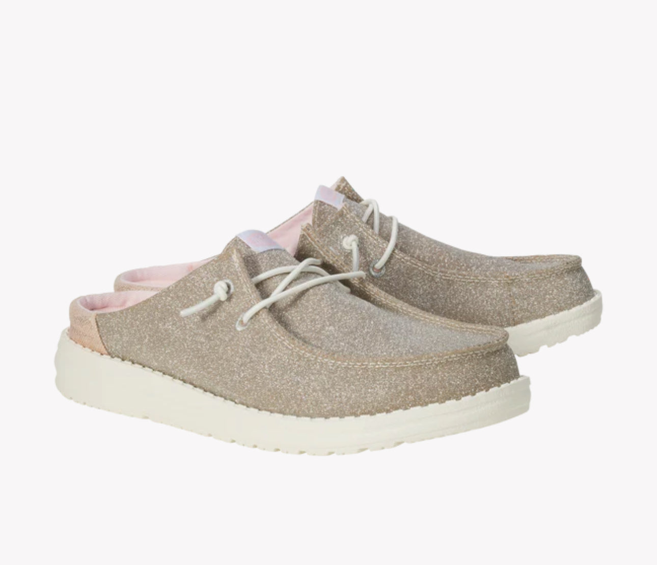 Sparkle and shine. Sparkle and shine. This season’s new motto, captured perfectly by the Wendy Slip Metallic Sparkle. Faux leather sparkle upper will have you shimmy and shine all the way down the street. While our lightweight outsole, slip-on style and removable foam insole will keep your feet in full comfort.