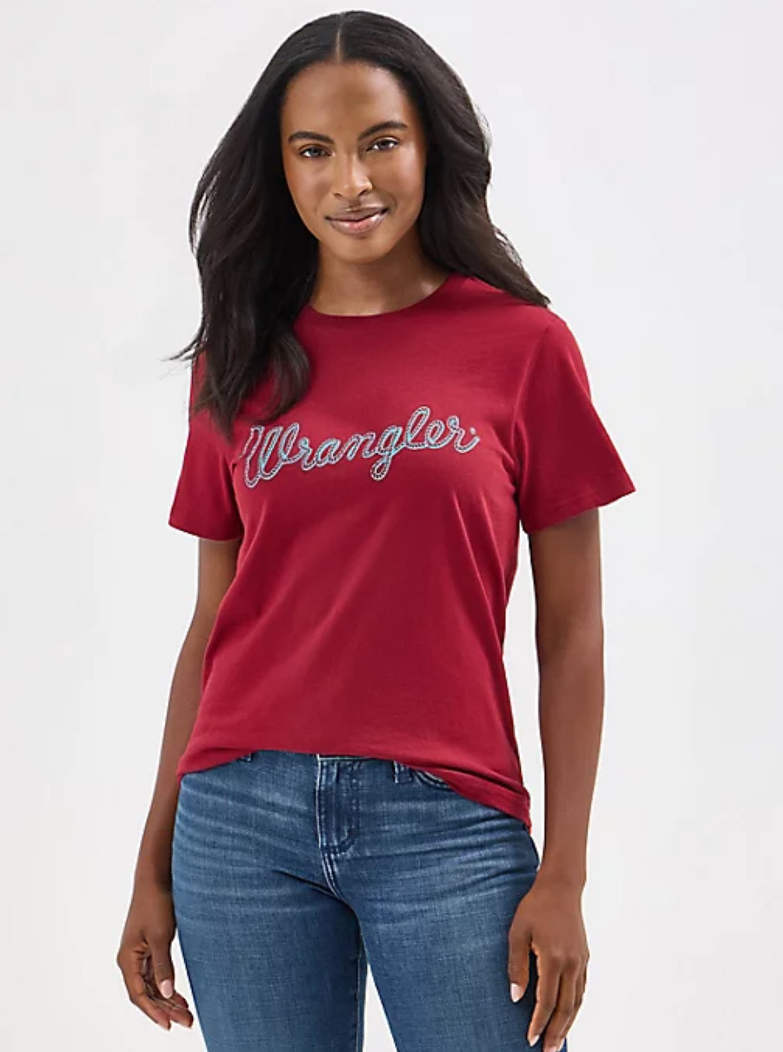 Made from comfortable cotton, the women's Retro® rope logo tee from Wrangler is the perfect complement to any casual outfit. Featuring a crew neck and regular fit, this tee includes the iconic Wrangler® rope logo on the chest for an authentic western touch. Wear it tied or tucked into your favorite pair of Wrangler Retro jeans.
