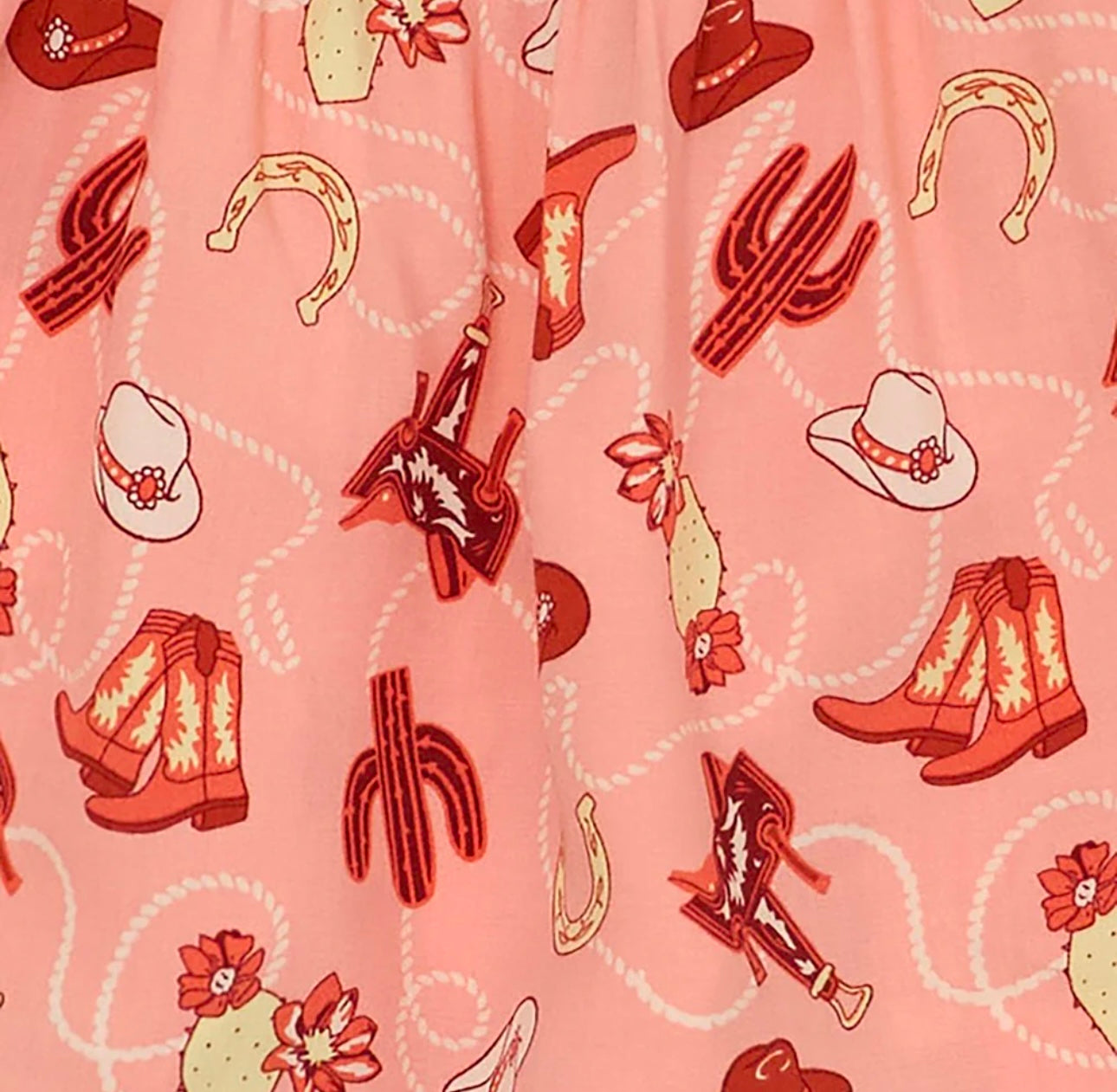 Introducing the perfect combination of cuteness and comfort with our Wrangler Baby Girl Long Sleeve Pink Western Dress. Made with 100% Rayon, this dress is soft and lightweight, perfect for your little one. Featuring a ruffle yoke design and adorned with boot, hay, cactus, and speer images, this dress is sure to make your baby girl stand out in style.