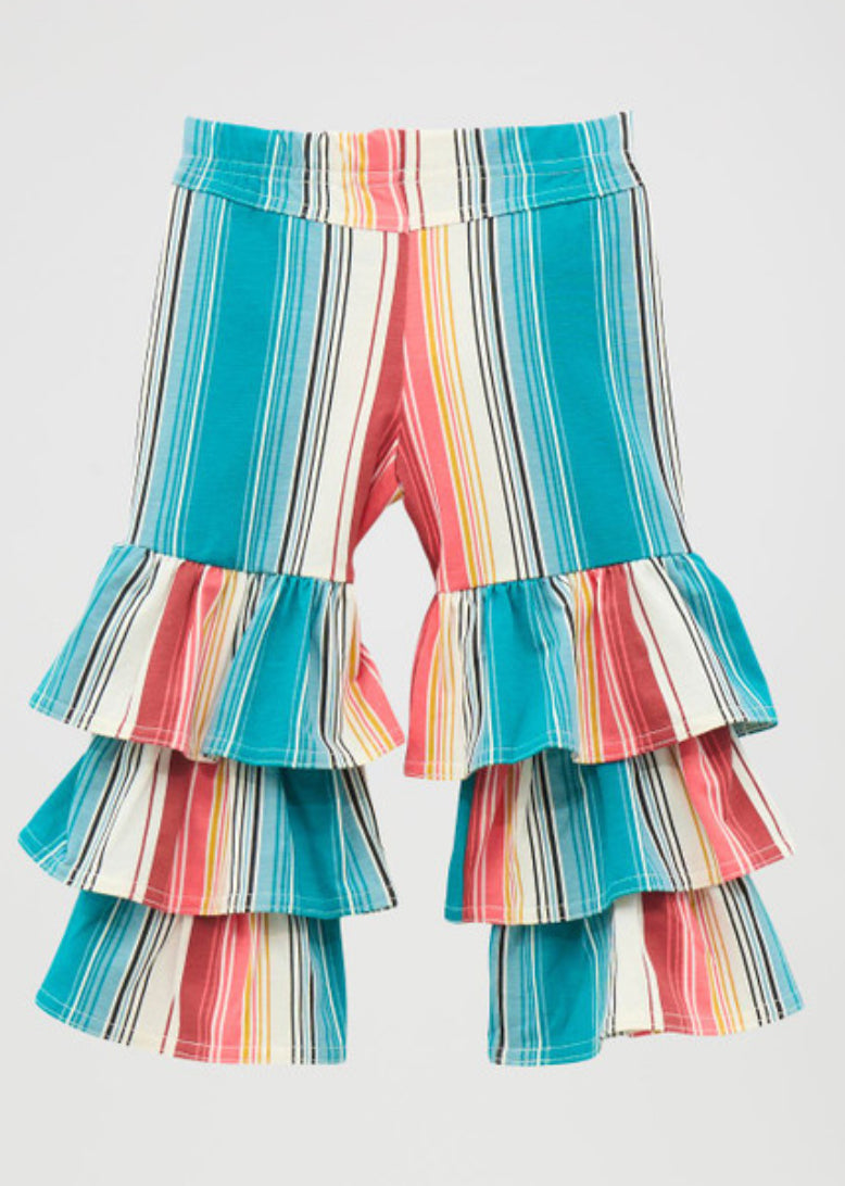 Introducing the WRANGLER BABY GIRL TIERED FLARE MULTI – a must-have for any little cowgirl's wardrobe. This jean boasts a retro-inspired look, complete with a comfortable pull-on design, an elastic waistband for the perfect fit, and a tiered leg full of ruffles for added flair. Made from a soft cotton blend with a touch of stretch for flexibility, and adorned with desert-inspired motifs, this jean is the perfect addition to any Western-inspired ensemble.