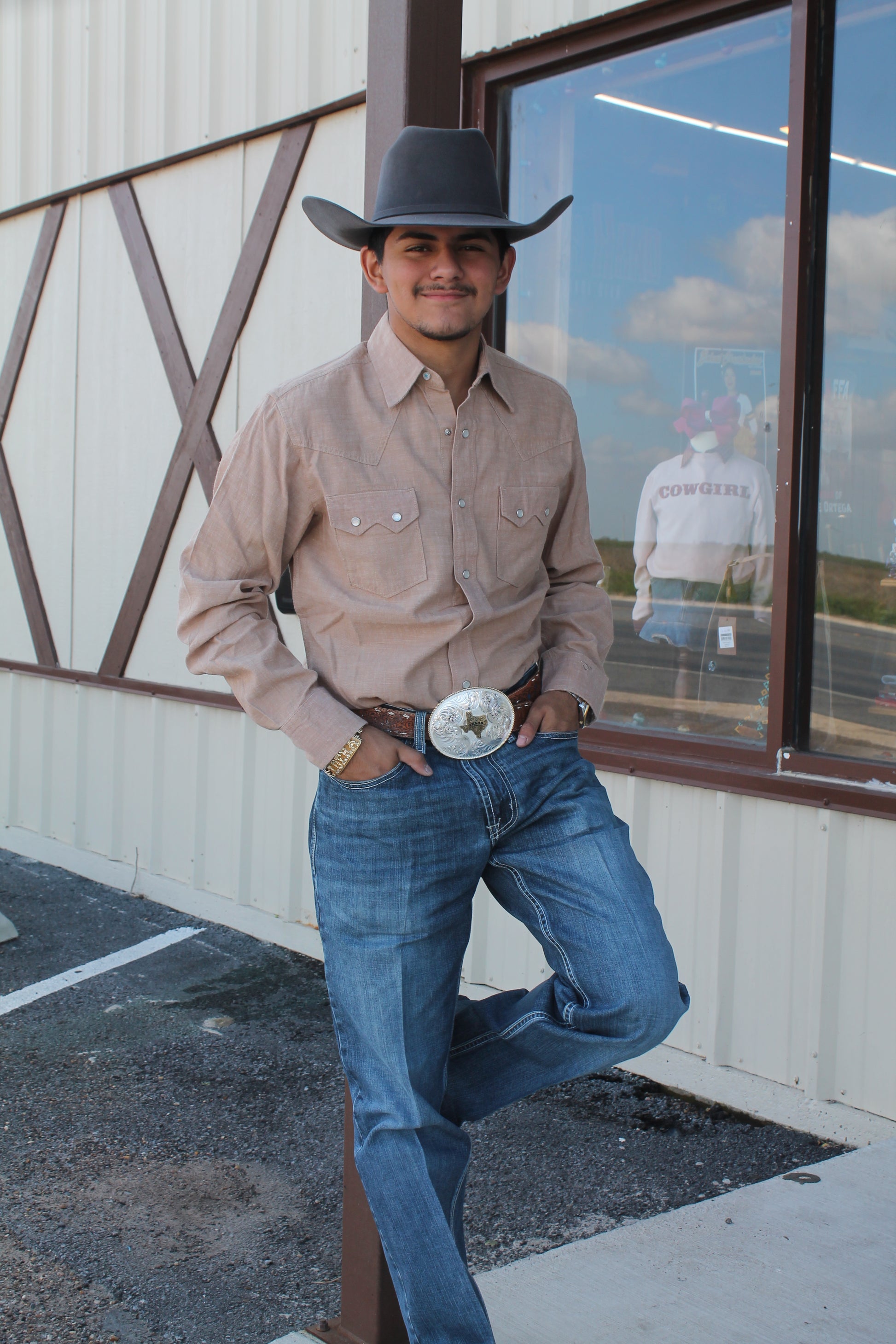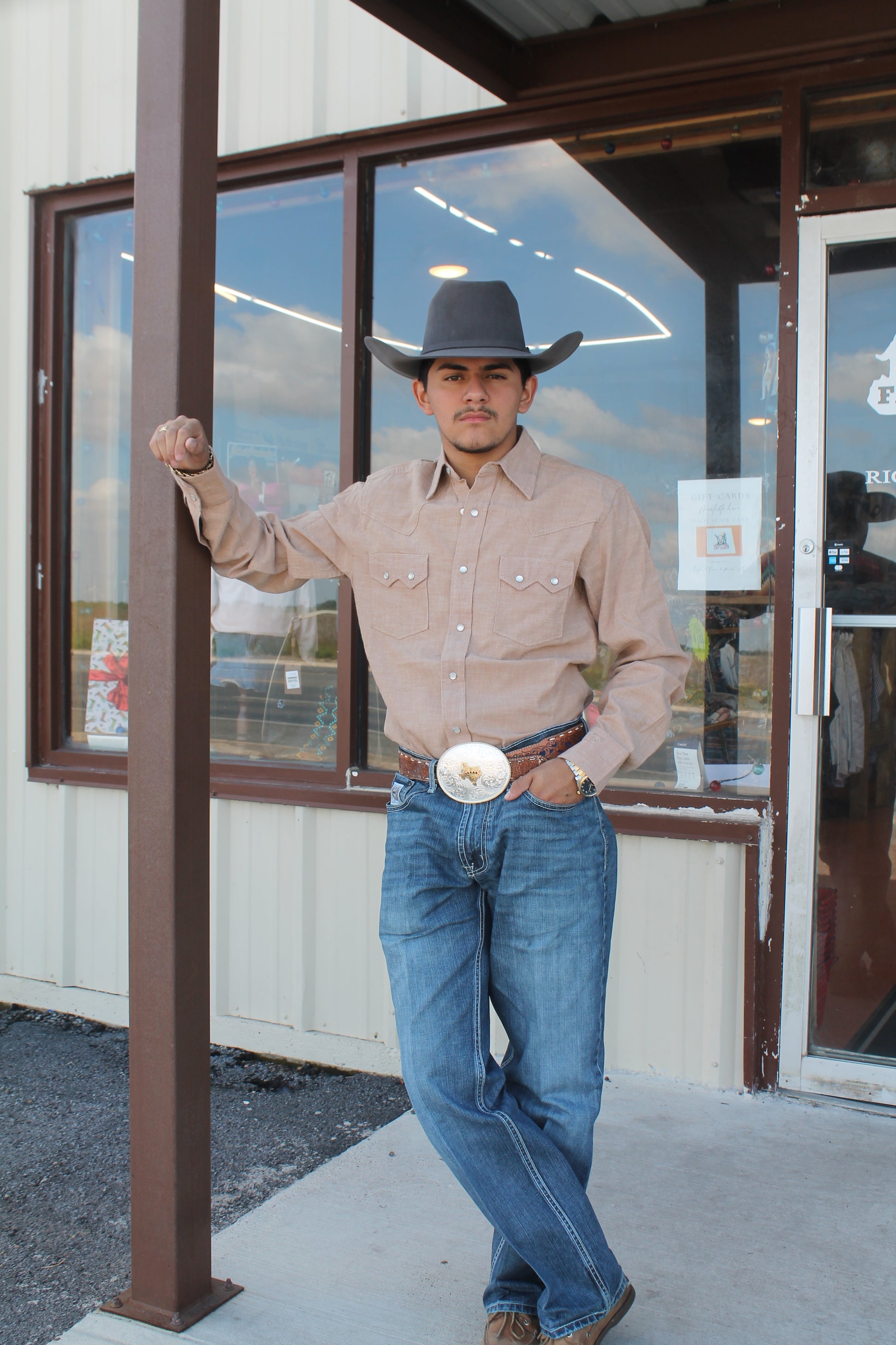 Inspired by COJO himself, our Men’s Cody Johnson Two Pocket Western Snap Shirt will become your new favorite in no time. It’s made of comfort soft cotton fabric you can wear all year round. This long-sleeve shirt comes with a hidden button-down collar to keep you looking sharp, single-point yokes from front to back, sawtooth flap chest pockets with snaps, and mitered cuffs with the country music star’s signature logo embroidered as his stamp of approval. Plus, its regular fit’s not too tight or too loose—just right.