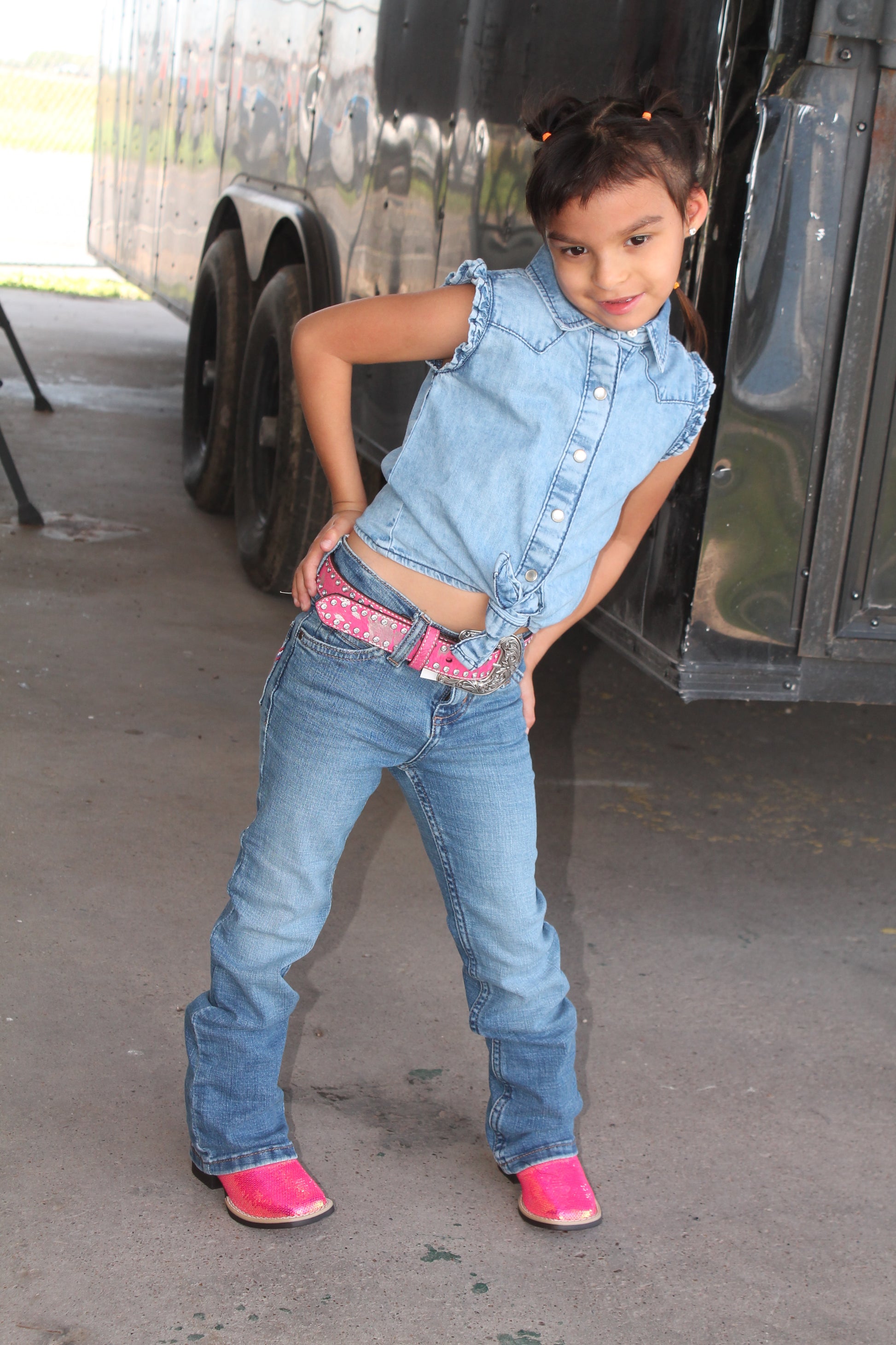 Introducing the Wrangler Girl's Denim Ruffle Top - the perfect blend of style and comfort. Made from acid washed denim, this top features adorable, ruffled sleeves and pearl snap buttons for a touch of elegance. Complete with a tie on the bottom for a customizable fit. Upgrade your little one's wardrobe today!