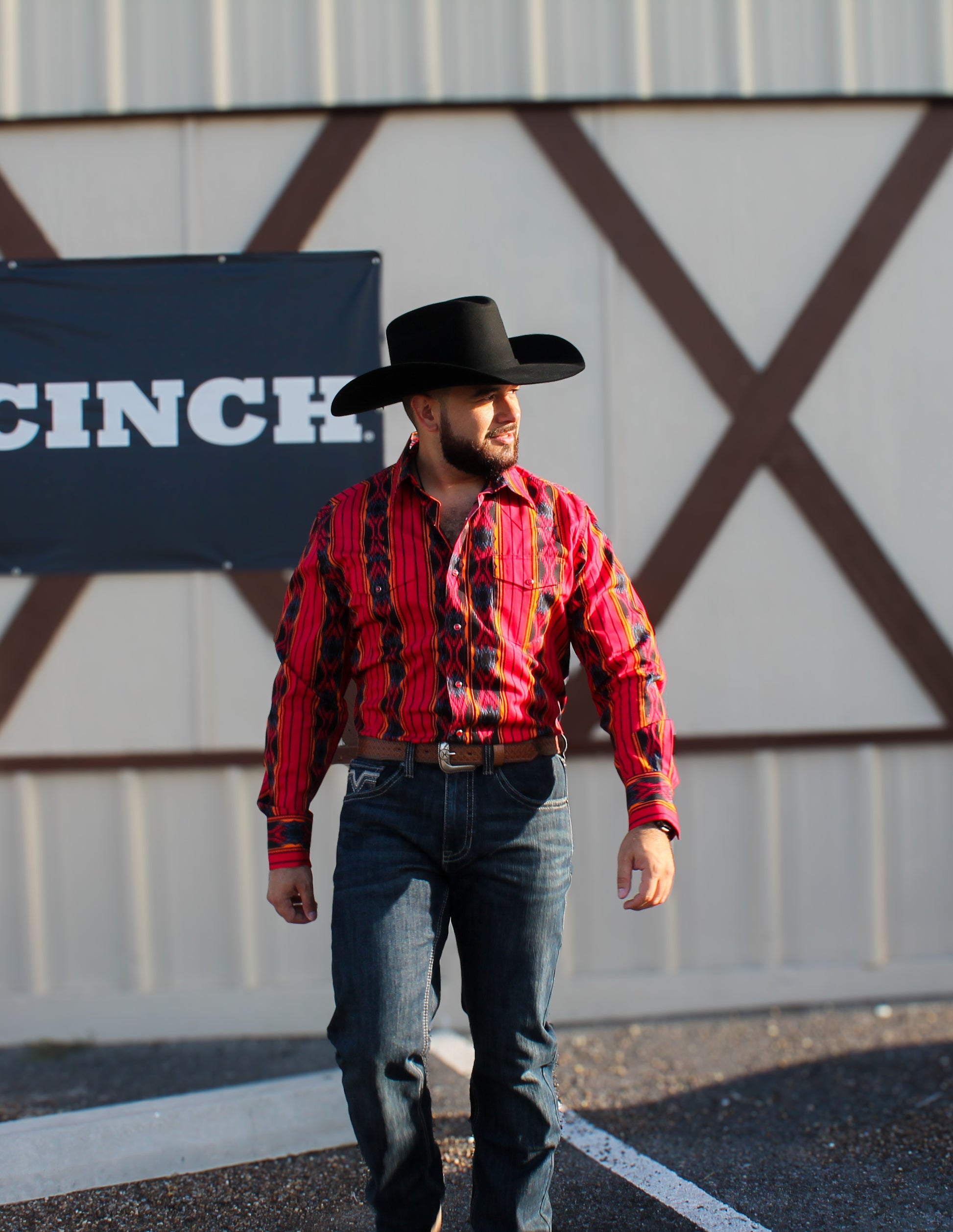 Expertly crafted for style and durability, the Wrangler Men’s Checotah Snap LS is a must-have addition to any wardrobe. Made with red buttons and a red base color, this shirt features bold black stripes and Aztec designs in red, orange, and blue. Complete with two front pockets and snap buttons, this shirt is the perfect blend of functionality and fashion.