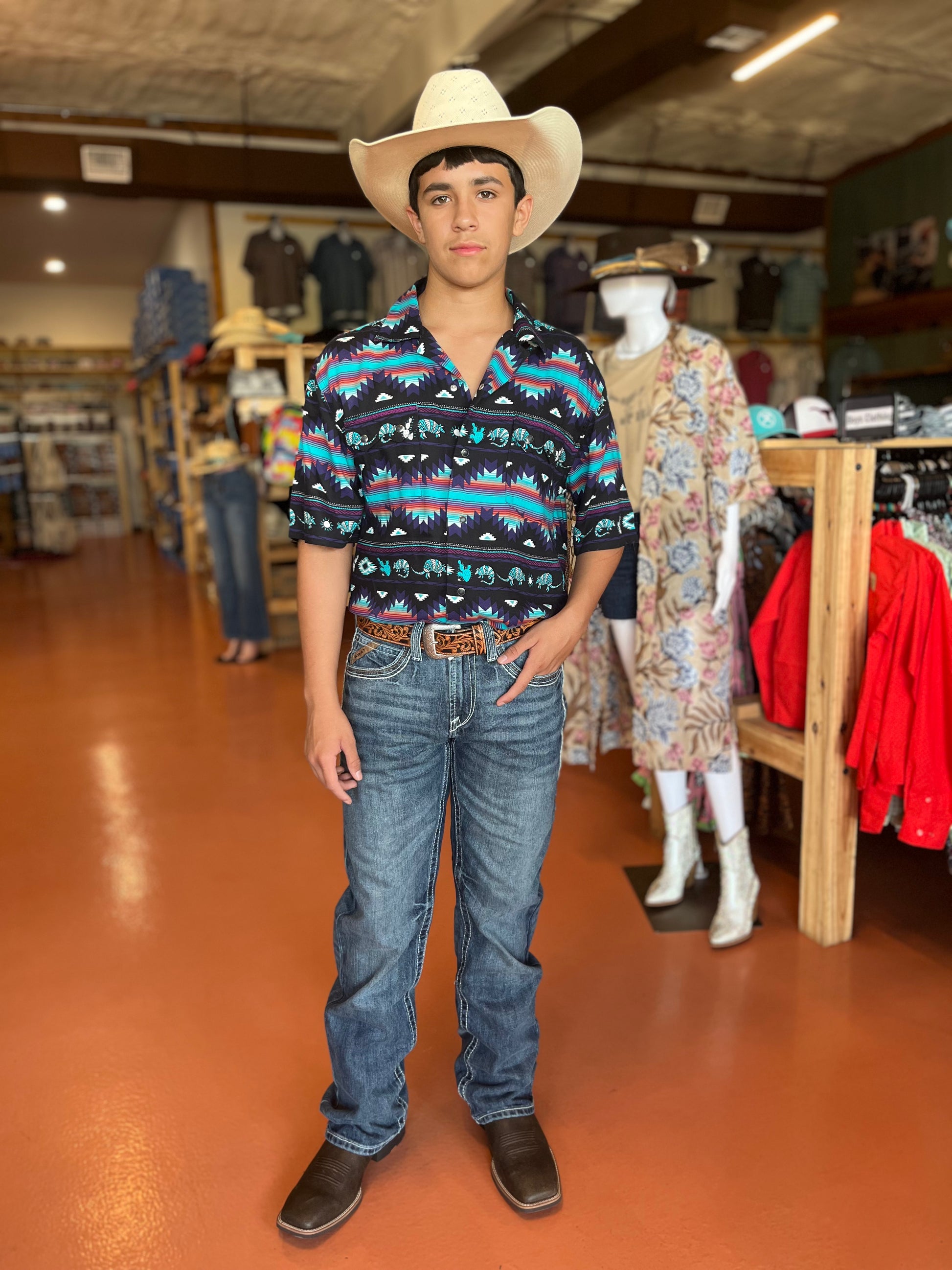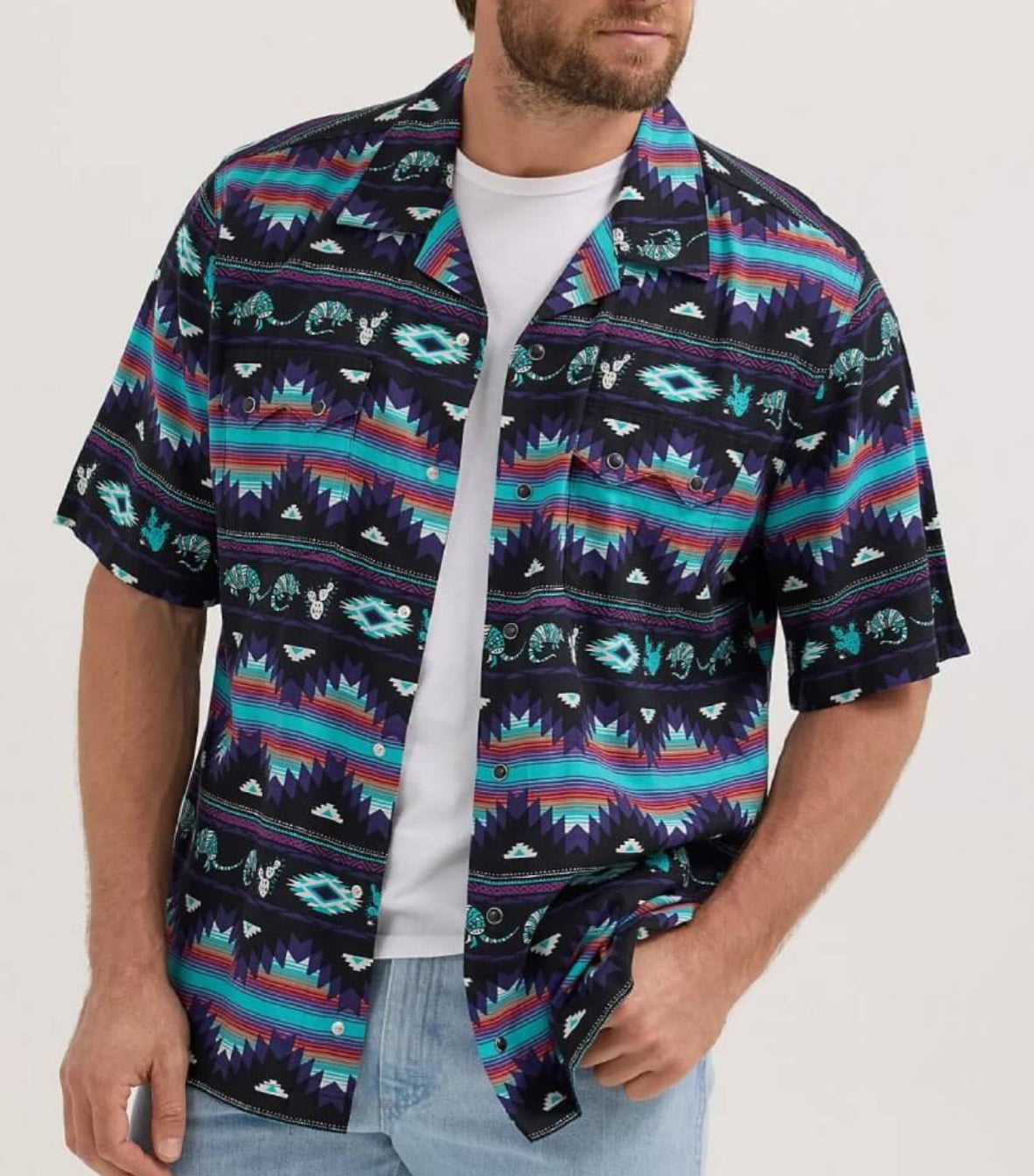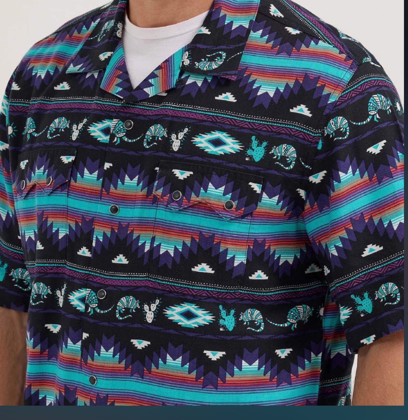 Casual and carefree, Coconut Cowboy snap-front camp shirt looks to the rich textures and colors in the world around us for inspiration. Taking cue from the classic Hawaiian shirt, this beachside button-up comes with a traditional spread collar, two snap flap pockets, a straight hem, and a bold tropical print with traces of our western roots throughout. It’s crafted from a lightweight cotton blend to keep you comfortable in the warm days ahead.